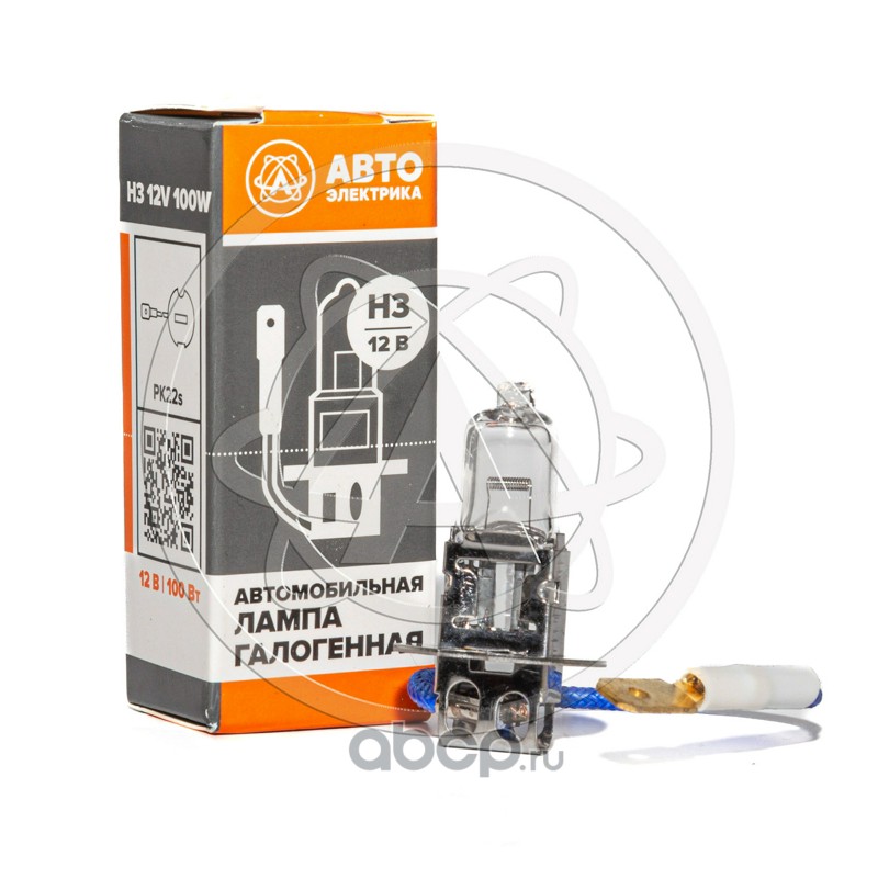 Автолампа галогенная H3, 12 В, 100 Вт, PK22S