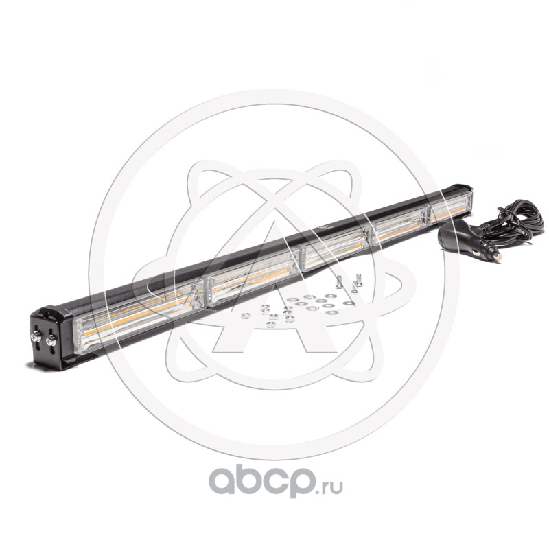 Маяк-стробоскоп 12/24 В, 24 Вт, желтый, 1-стор. (4 блока COB), 18 реж., крепление на кронштейне, прикуриватель (провод 3м), 590*40*50 мм