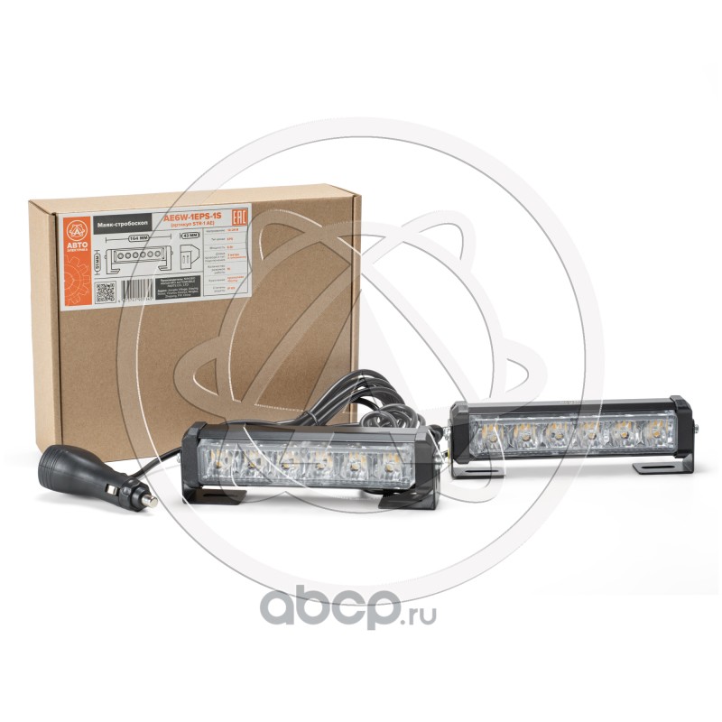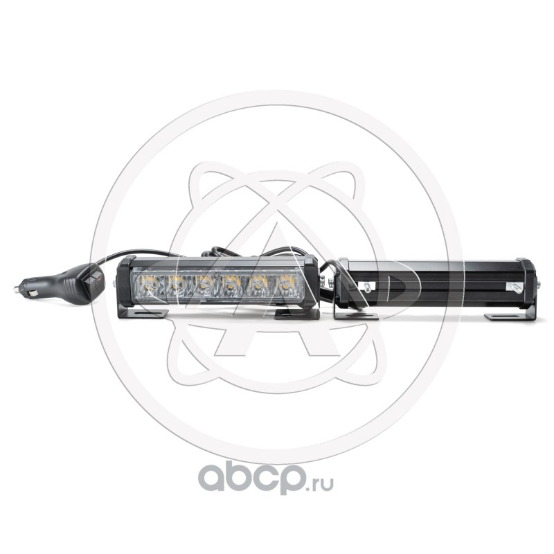 Маяк-стробоскоп (2 раздельных блока), 12/24 В, 6 Вт, желтый, 1-стор. (1+1 блок Epistar), 16 реж., крепление на кронштейне, прикуриватель (провод 3м), L=164мм