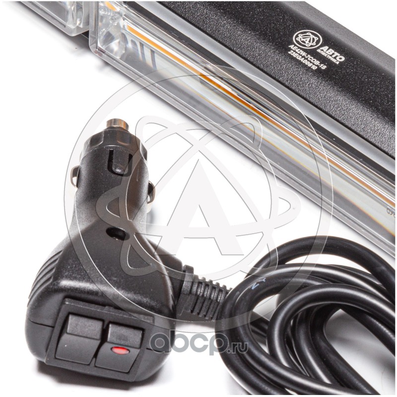Маяк-стробоскоп (2 раздельных блока), 12/24 В, 6 Вт, желтый, 1-стор. (1+1 блок COB), 16 реж., крепление на кронштейне, прикуриватель (провод 3м), L=164мм
