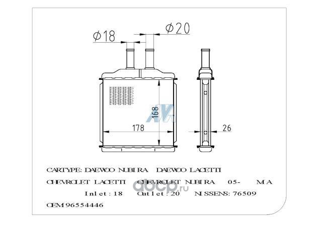 | AVVAUTO | 22056088YZ | РАДИАТОР ПЕЧКИ (DW6088) Daewoo Nubira, Lacetti (08/03-) 165*185*22 | ||