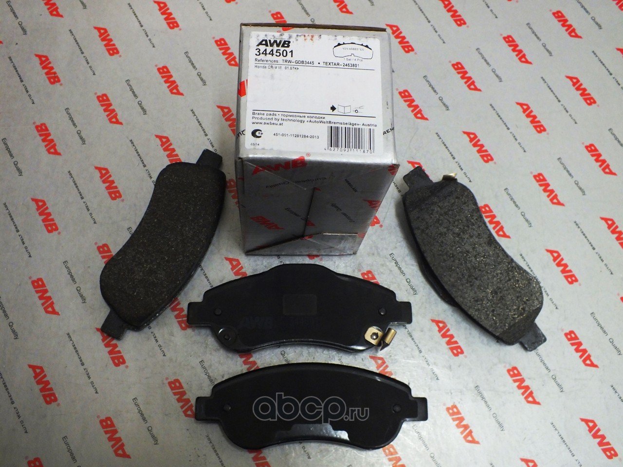 AWB | 160101 | Комплект тормозных колодок, дисковый тормоз | |