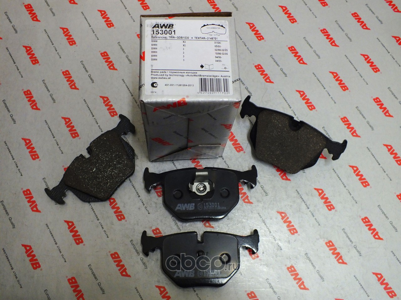 | AWB | 153001 | Комплект тормозных колодок, дисковый тормоз | ||