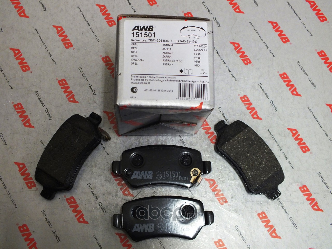 | AWB | 155001 | Комплект тормозных колодок, дисковый тормоз | ||