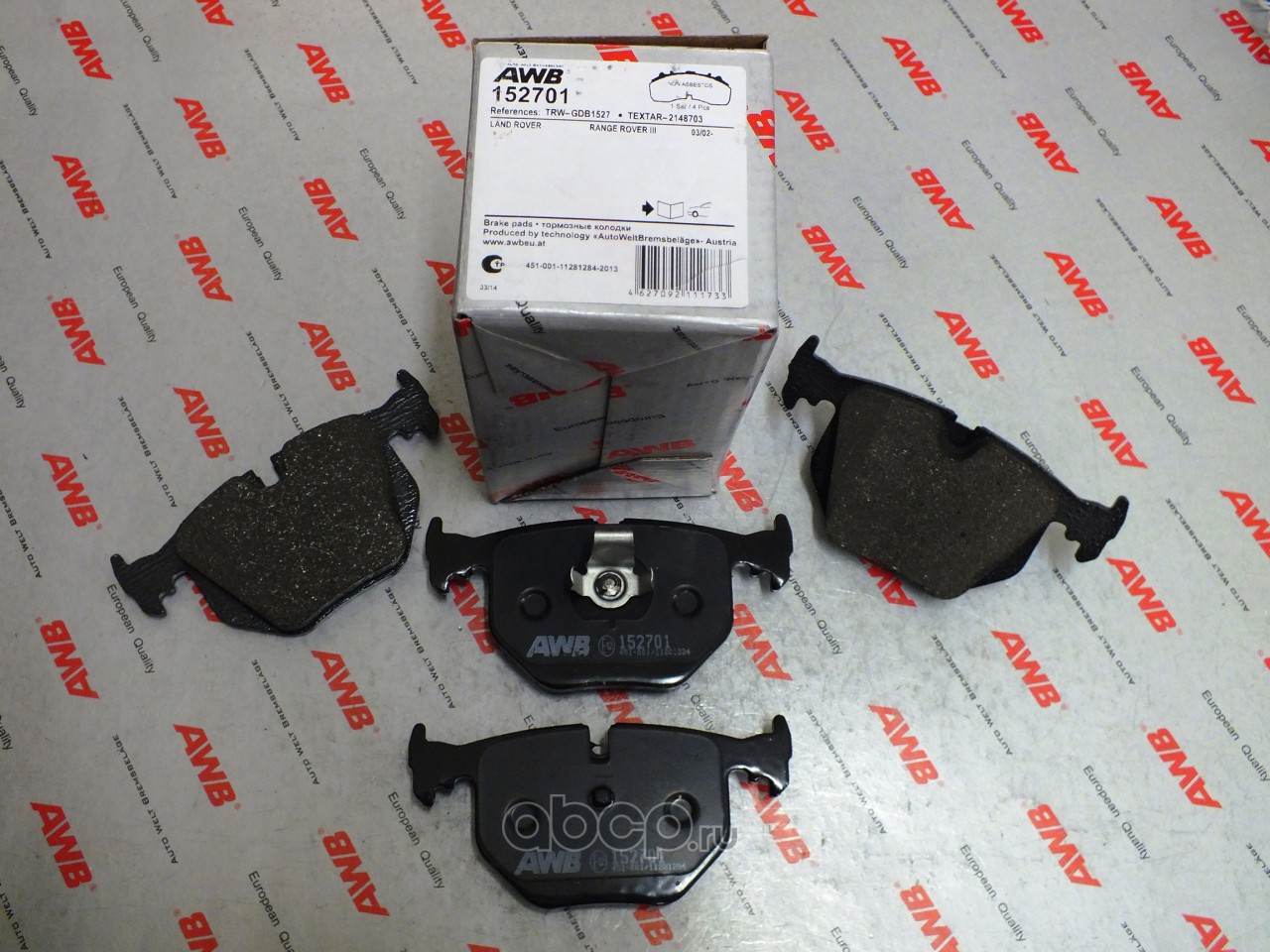 | AWB | 152701 | Комплект тормозных колодок, дисковый тормоз | ||
