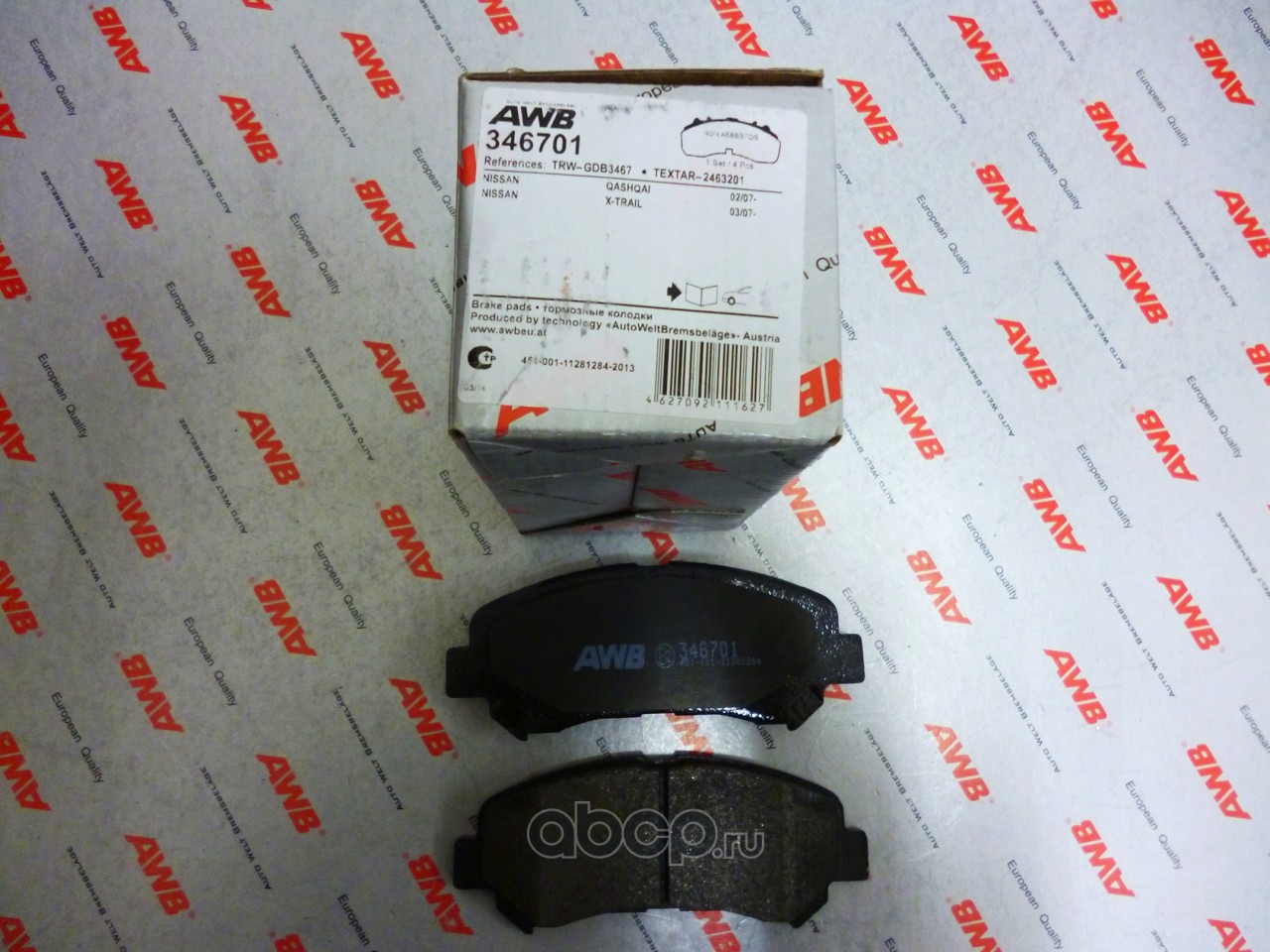 AWB | 167301 | Комплект тормозных колодок, дисковый тормоз | |