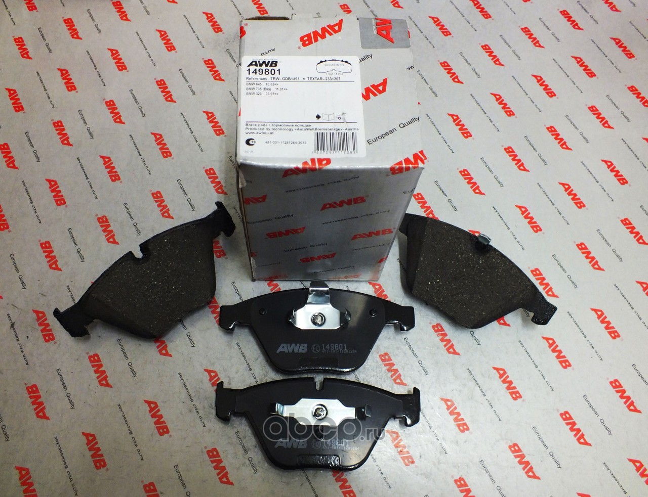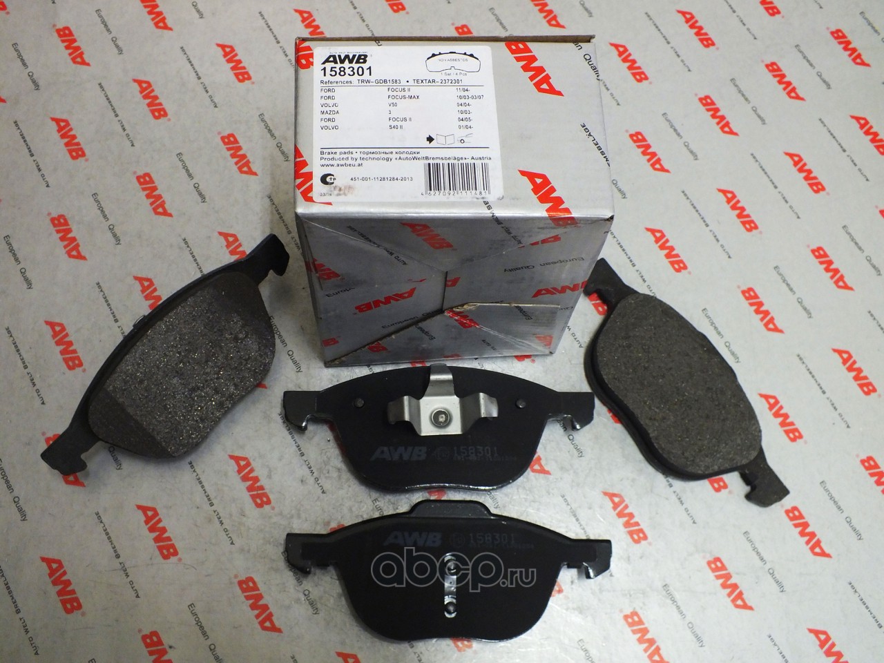 | AWB | 158301 | Комплект тормозных колодок, дисковый тормоз | ||