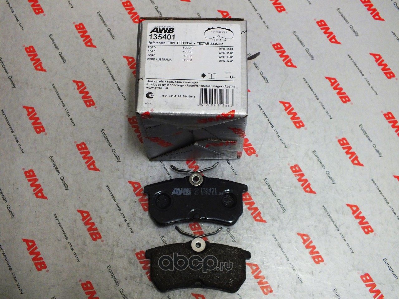 | AWB | 135401 | Комплект тормозных колодок, дисковый тормоз | ||