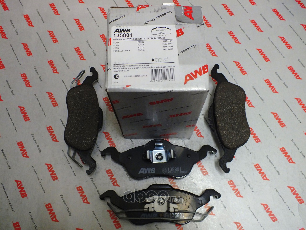 | AWB | 135801 | Комплект тормозных колодок, дисковый тормоз | ||