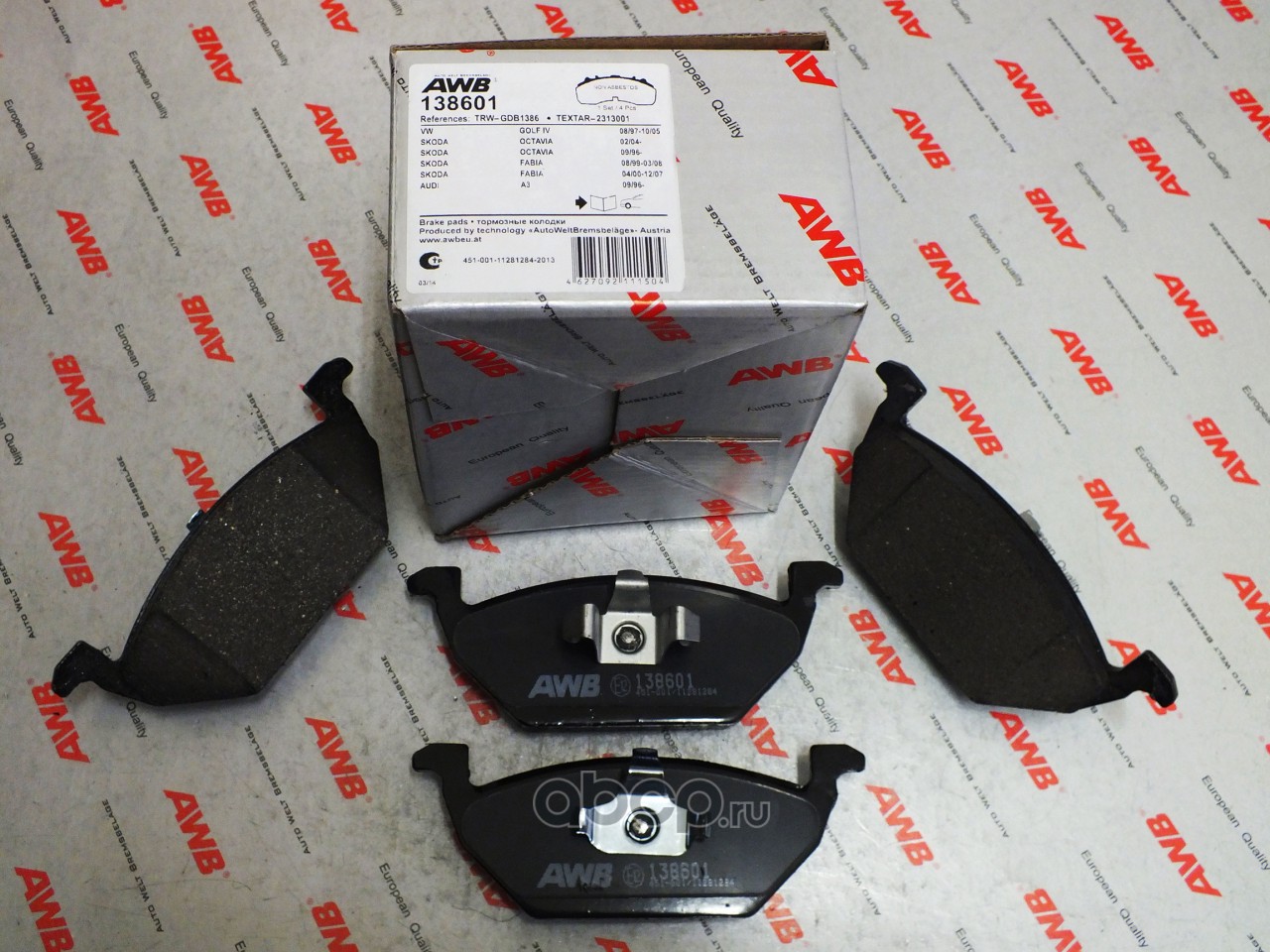 | AWB | 138601 | Комплект тормозных колодок, дисковый тормоз | ||