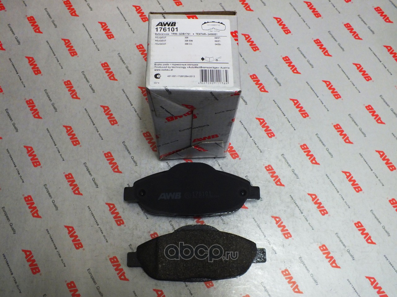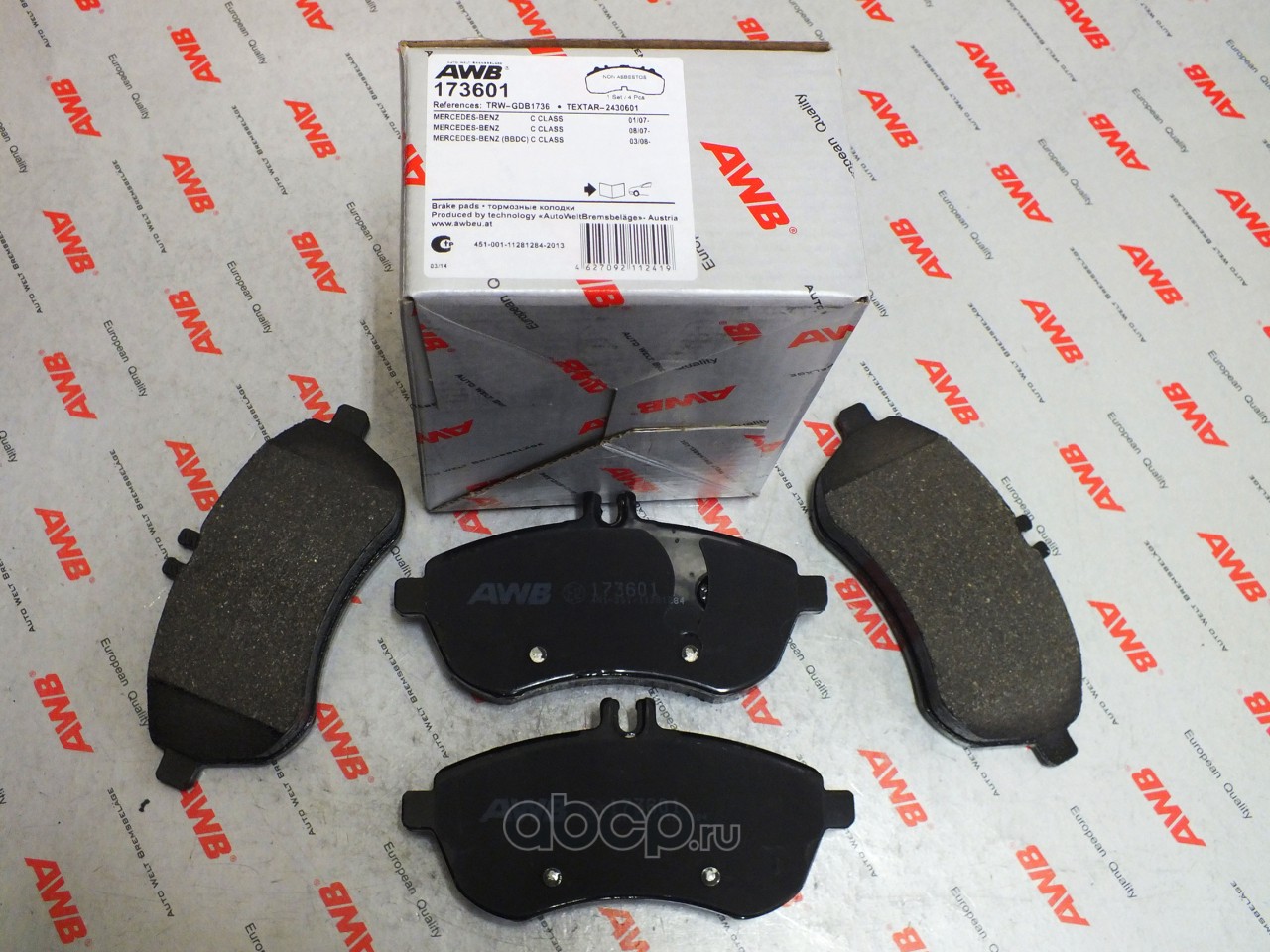 | AWB | 173601 | Колодки тормозные, комплект, передние | ||