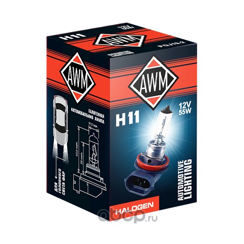 AWM 410300013 Лампа галогенная AWM H11 12V 55W (PGJ19-2)