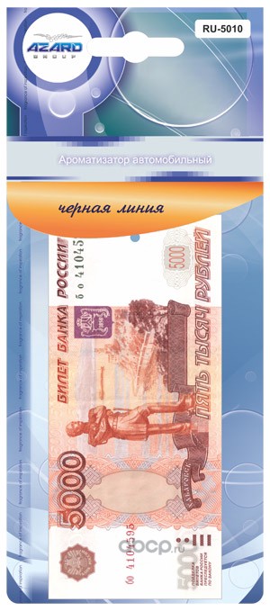 | AZARD | RU5010 | Ароматизатор воздуха подвесной картонный AZARD "5000 рублей" Черная линия | ||