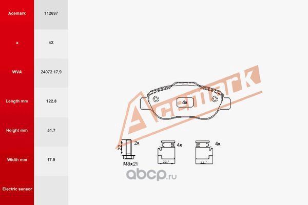 | Acemark | 112697 | Комплект тормозных колодок, дисковый тормоз |