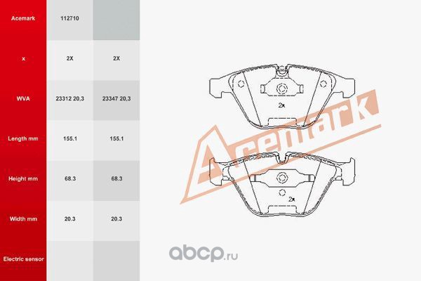| Acemark | 112710 | Комплект тормозных колодок, дисковый тормоз | ||
