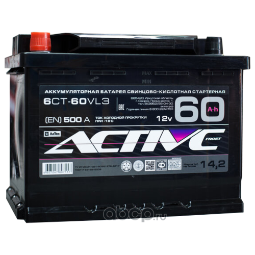 ActiveFrost | AF60ЗR | Батарея аккумуляторная 60А/ч 500А обратная полярн. стандартные (Европа) клеммы | |