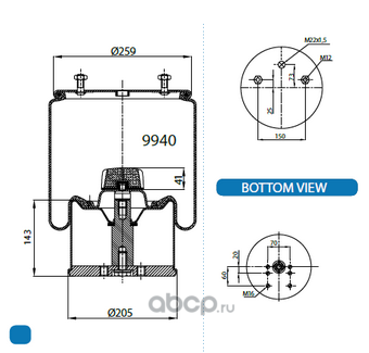 | AirREX | 152231261ARX | Пневморессора 9940-C (940MB) металл. стакан | ||