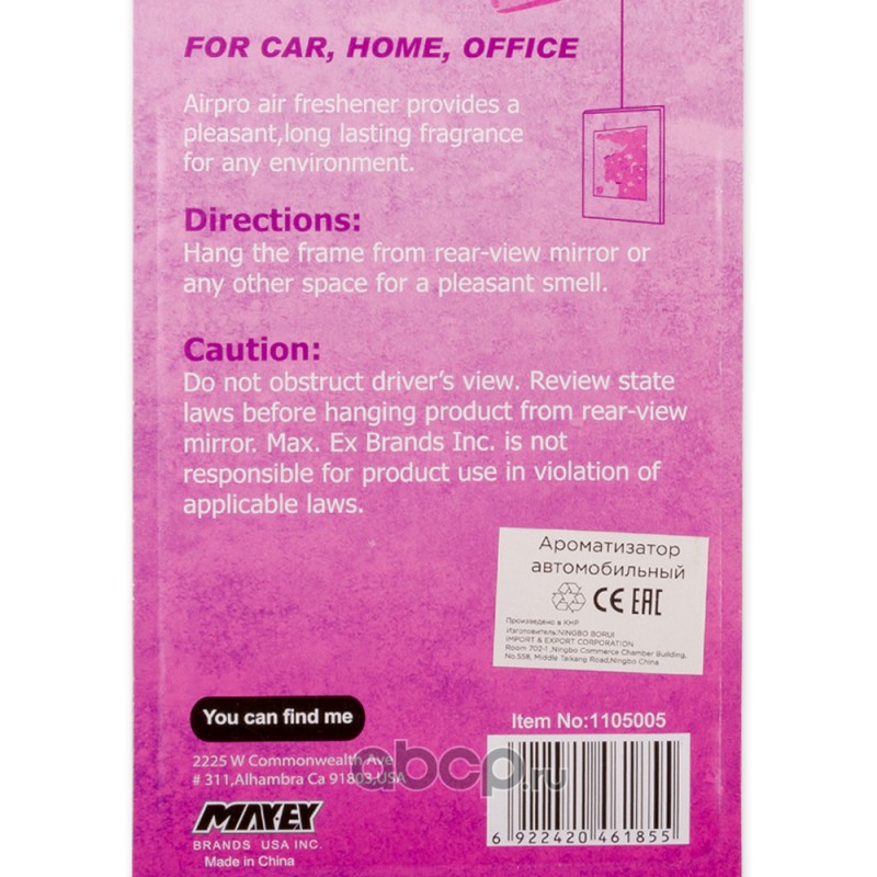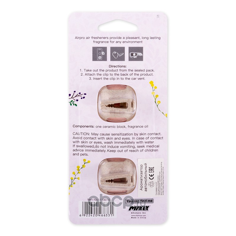 | Airpro | 1105005 | Ароматизатор Little Angel пропитанный пластинка цветочный AIRPRO | ||