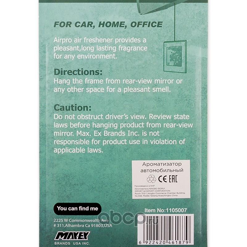 | Airpro | 1107009 | Ароматизатор бумажные палочки пропитанный пластинка морская свежесть AIRPRO 1105009 | ||