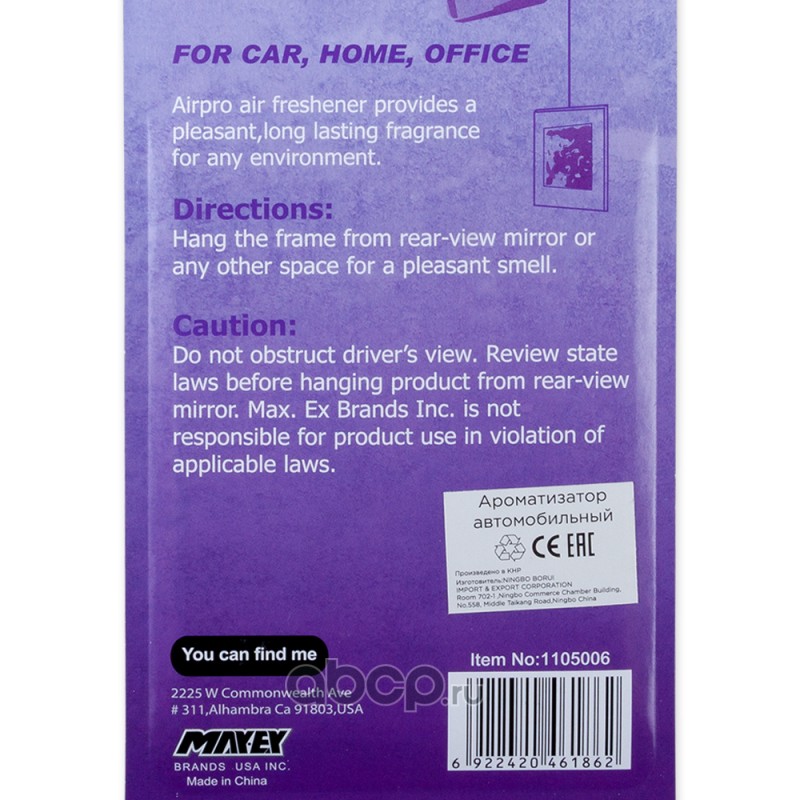 | Airpro | 1105006 | Ароматизатор Violet Blast пропитанный пластинка Фиалки AIRPRO | ||