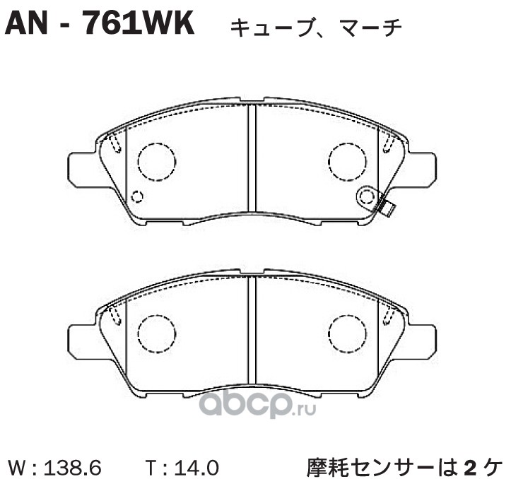 | Akebono | AN750WK | Дисковые тормозные колодки | ||