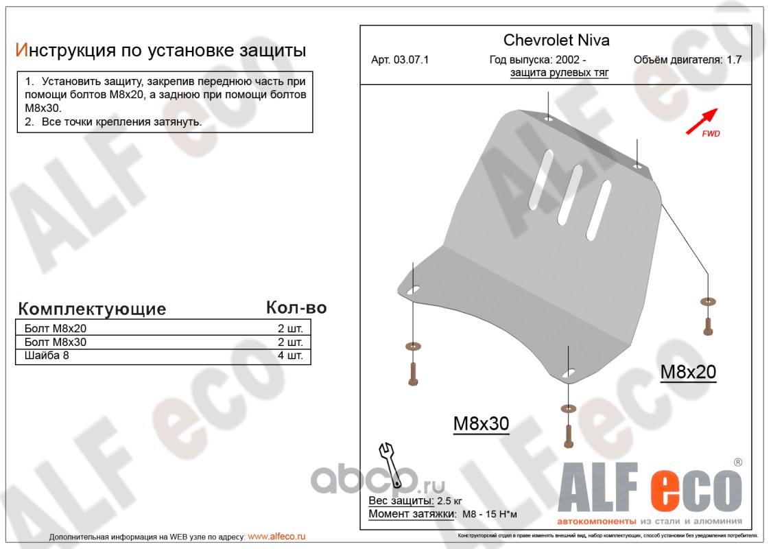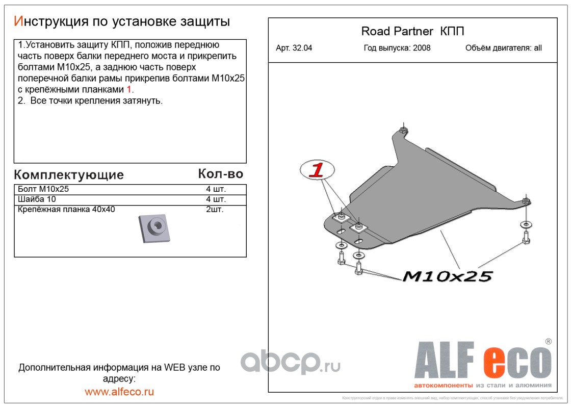 | AlfEco | AL0307AL4 | Защита картера двигателя и кпп | ||