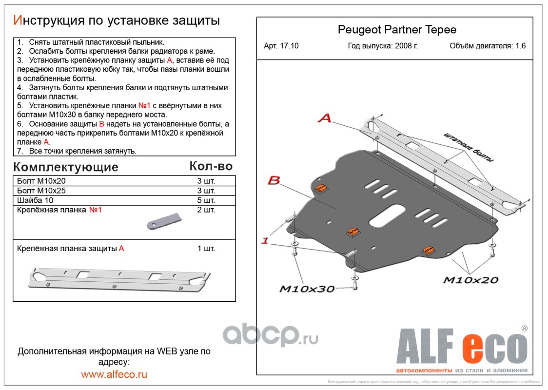 | AlfEco | ALF1710 | Защита картера двигателя и кпп | ||