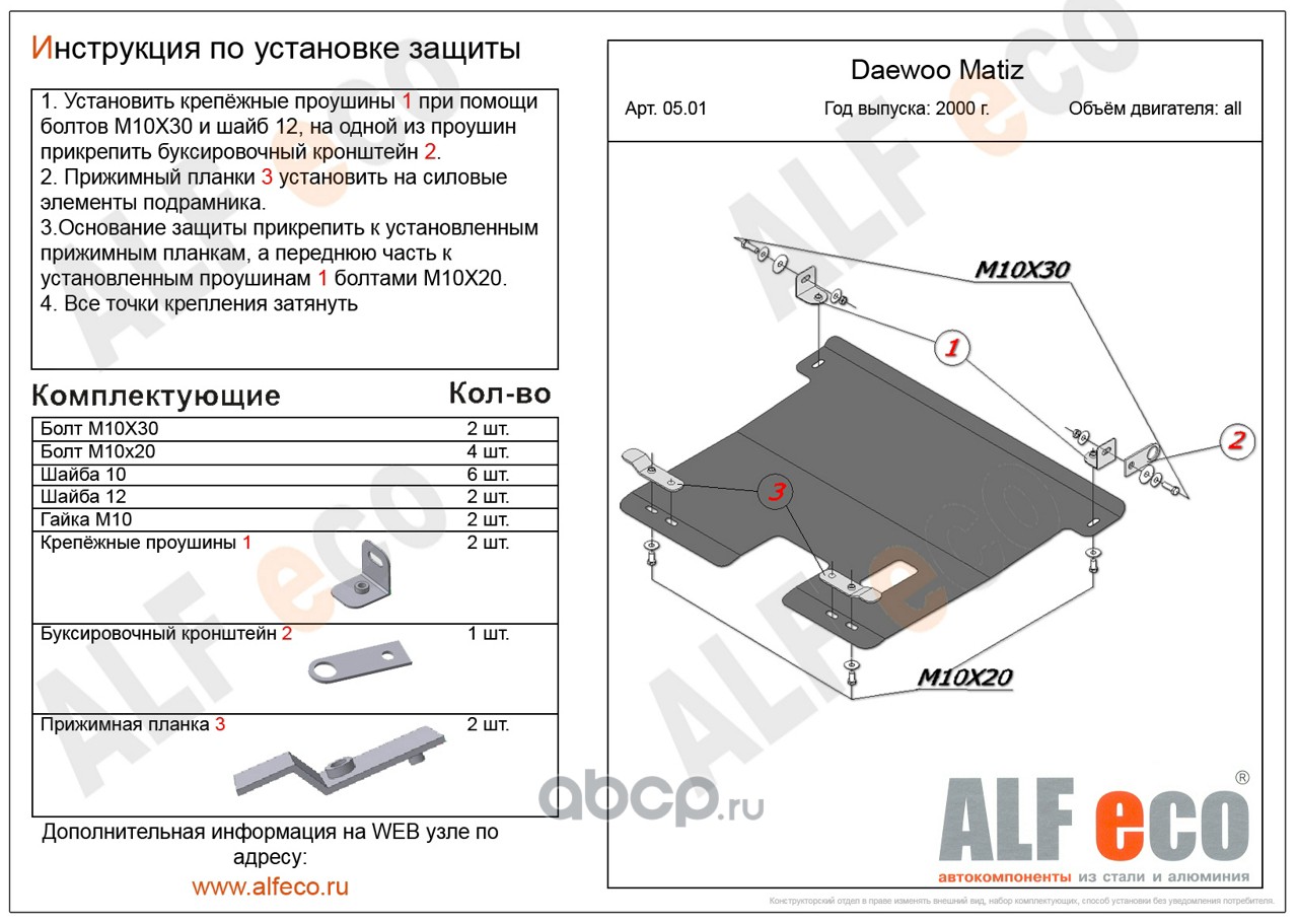 | AlfEco | ALF2301ST | Защита картера двигателя и кпп | ||