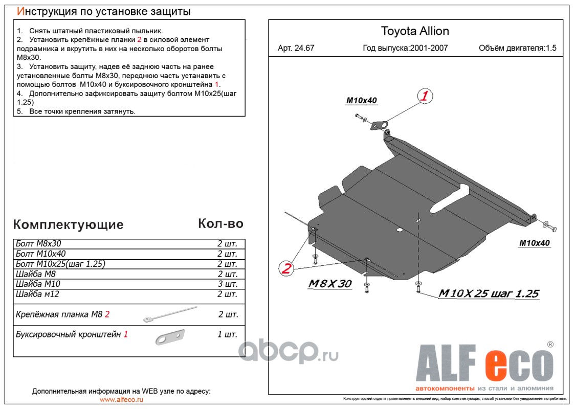 | AlfEco | ALF2467AL5 | Защита картера двигателя и кпп | ||