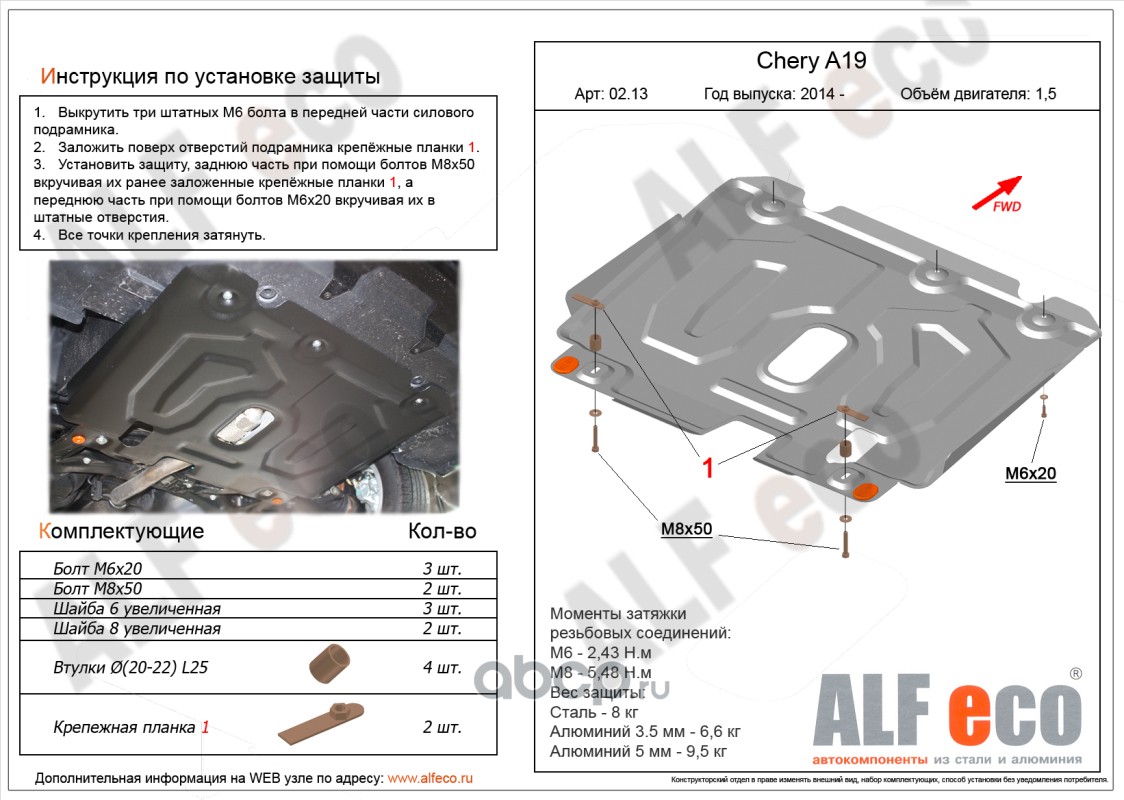| AlfEco | ALF1535AL5 | Защита картера двигателя и кпп | ||