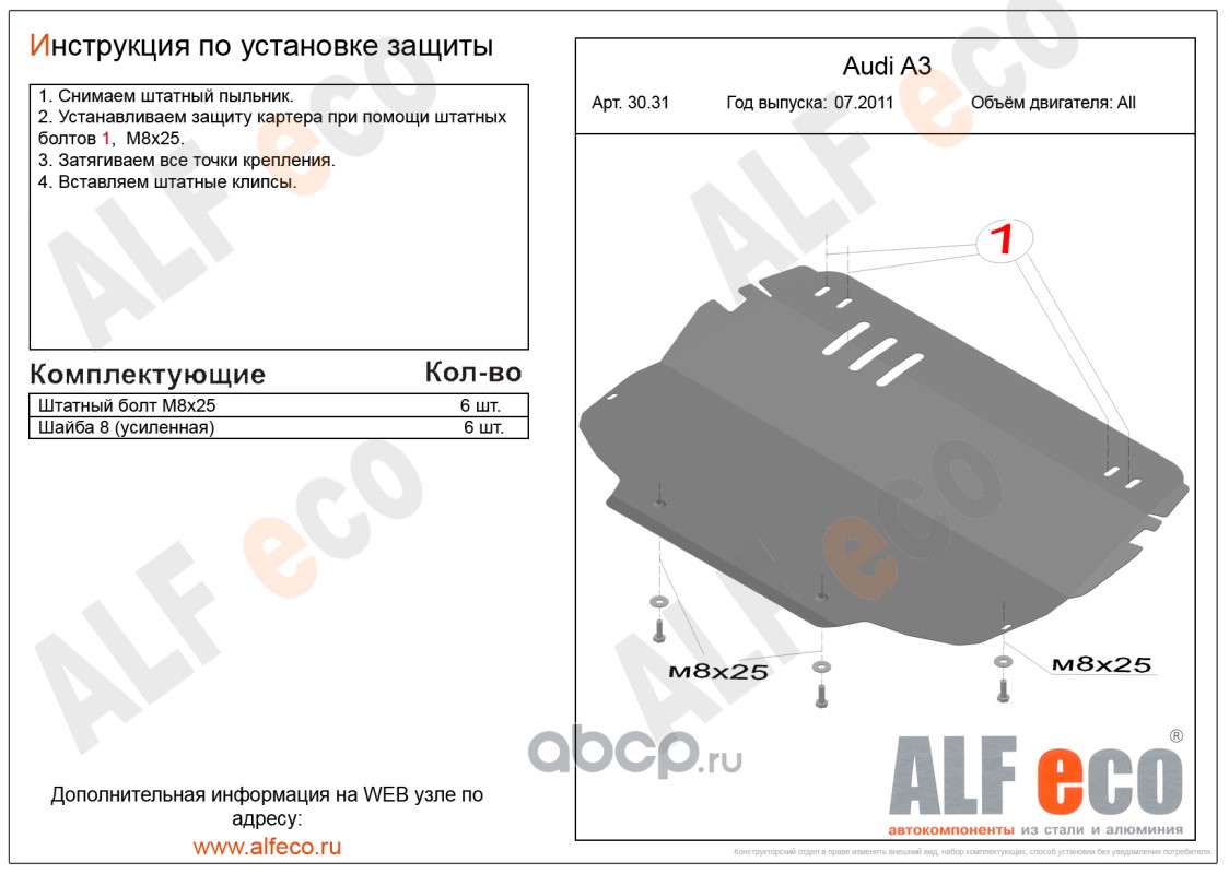 | AlfEco | ALF3031 | Защита картера двигателя и кпп | ||
