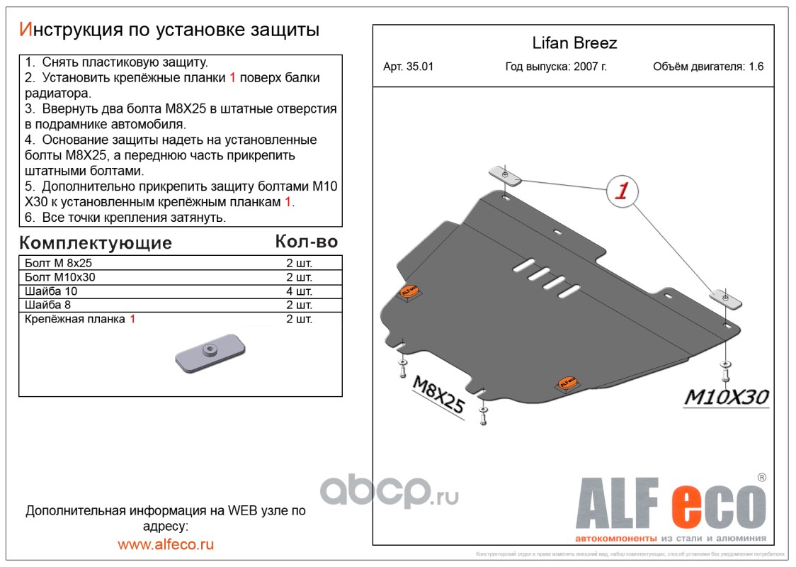 | AlfEco | ALF3501 | Защита картера двигателя и кпп | ||