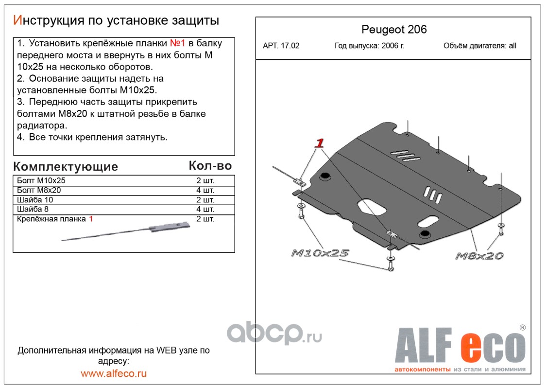 | AlfEco | ALF1702 | Защита картера двигателя и кпп | ||