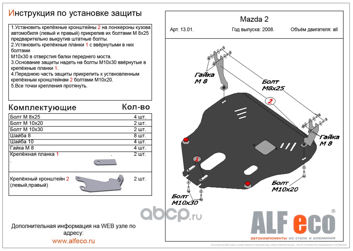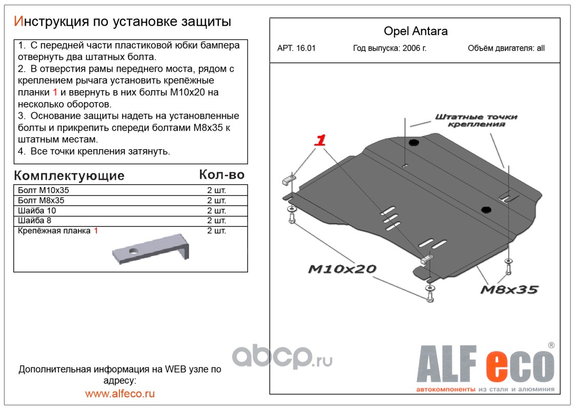 | AlfEco | ALF1301 | Защита картера двигателя и кпп | ||