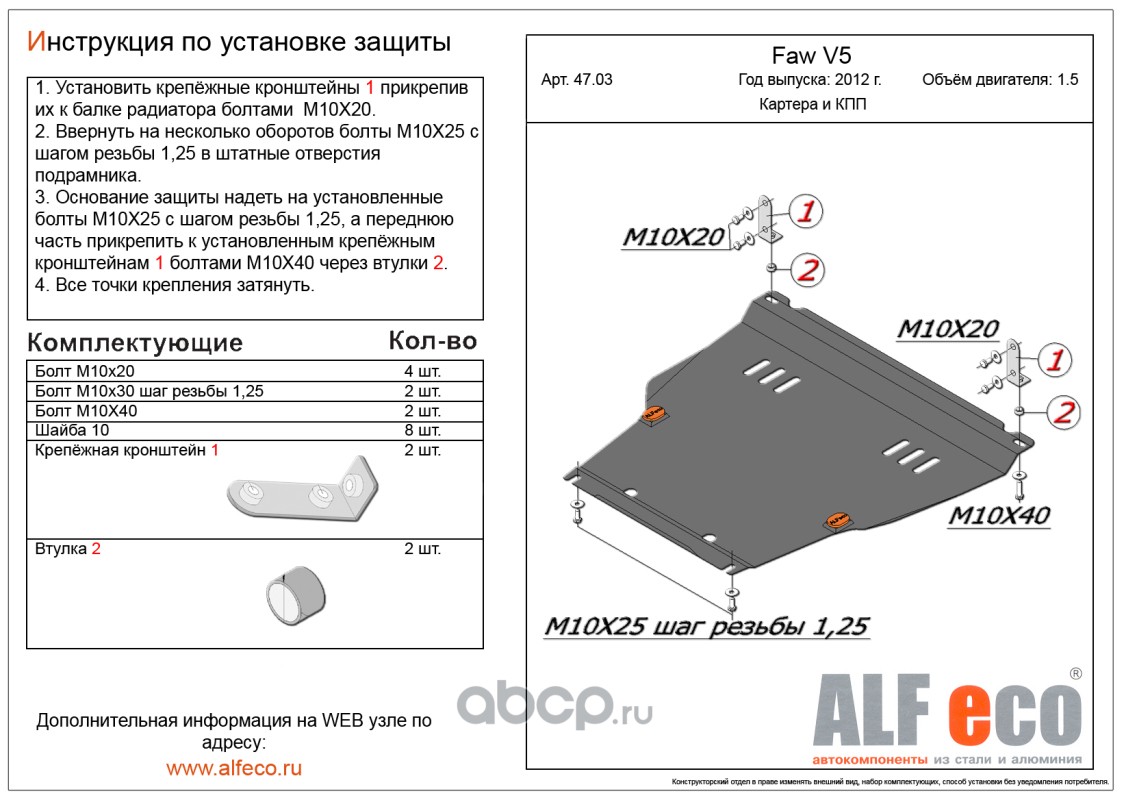 | AlfEco | ALF4703ST | Защита картера двигателя и кпп | ||