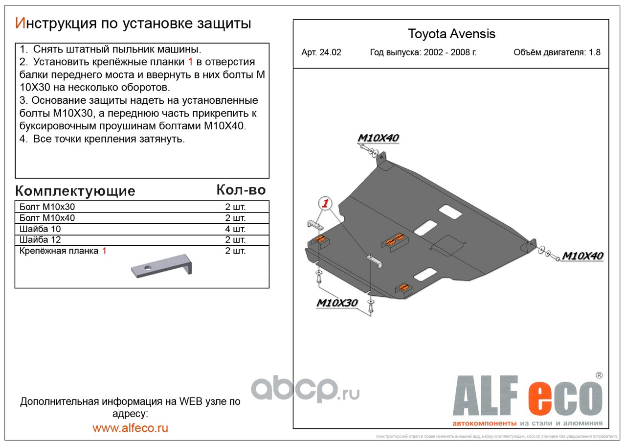 | AlfEco | ALF2402 | Защита картера двигателя и кпп | ||