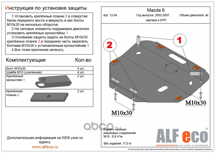| AlfEco | ALF1103 | Защита картера двигателя и кпп | ||