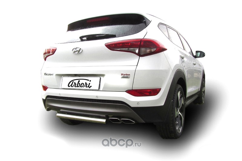 Защита заднего бампера d57 короткая Arbori нержавеющая сталь для HYUNDAI Tucson 2015-2018