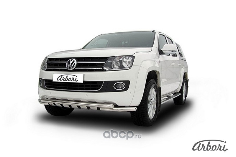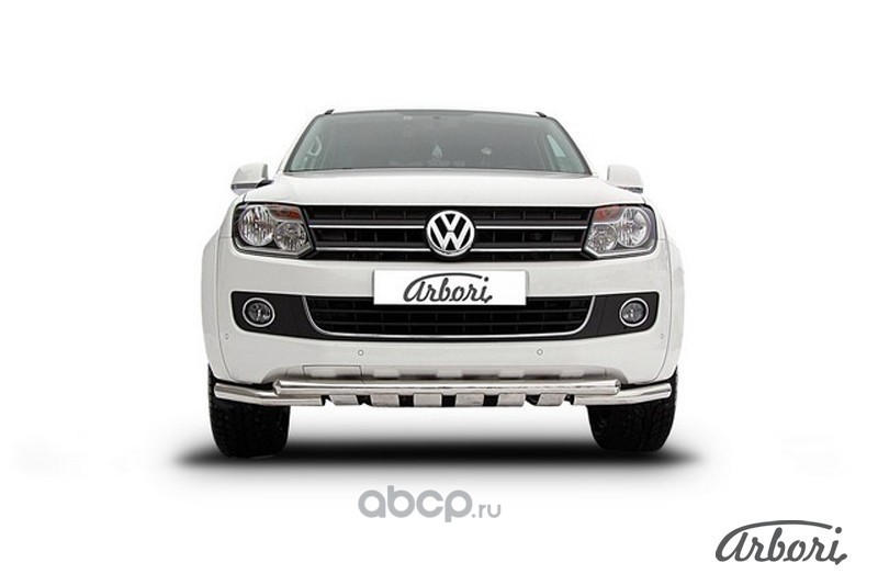 Защита переднего бампера d76+d57 двойная Arbori нержавеющая сталь для Volkswagen AMAROK(2013) 2013-2016