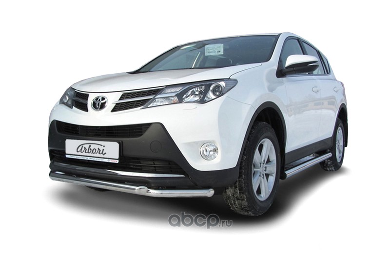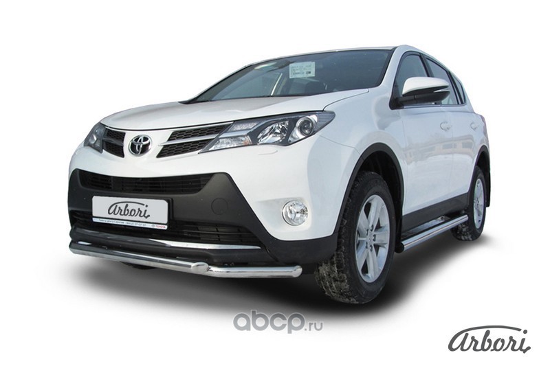 Защита переднего бампера d57+d57 двойная Arbori нержавеющая сталь для TOYOTA RAV4 2013-2015