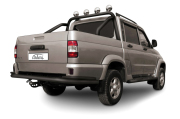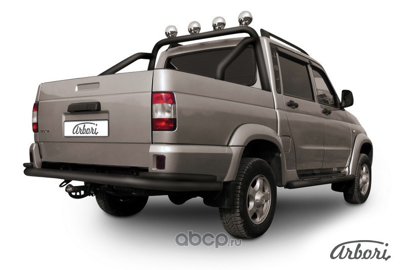 Защита заднего бампера d76+d42 двойная Arbori черн. для UAZ PICKUP 2007-2014