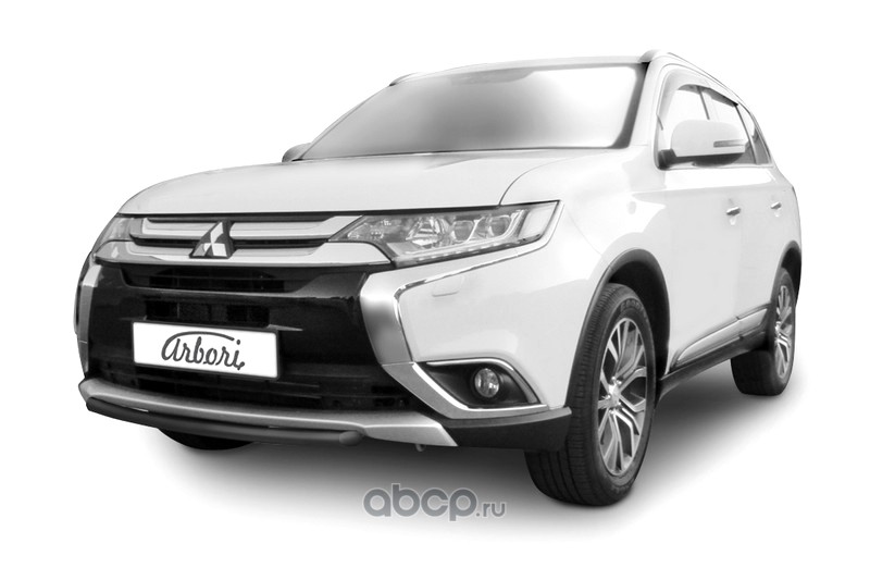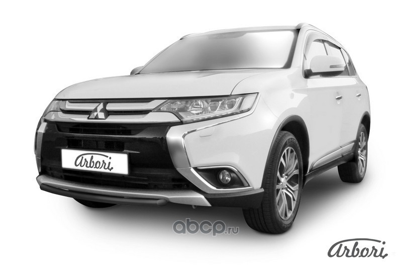 Защита переднего бампера d57 короткая Arbori черн. для Mitsubishi OUTLANDER 3-го поколения 2-й рестайлинг (2015-2018гг)