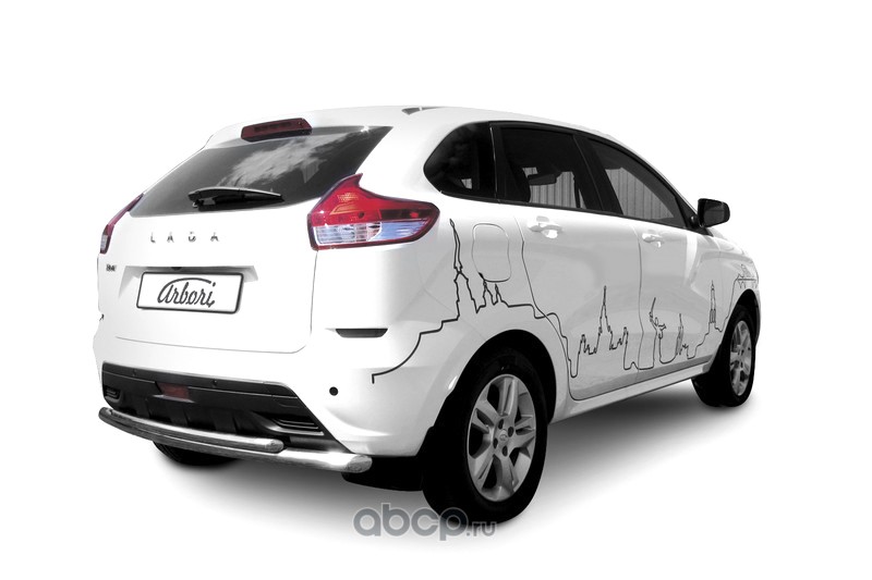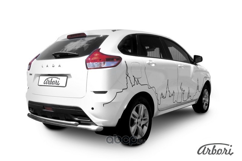 Защита заднего бампера d57 + d42 двойная Arbori нержавеющая сталь для LADA Xray 2015-нв