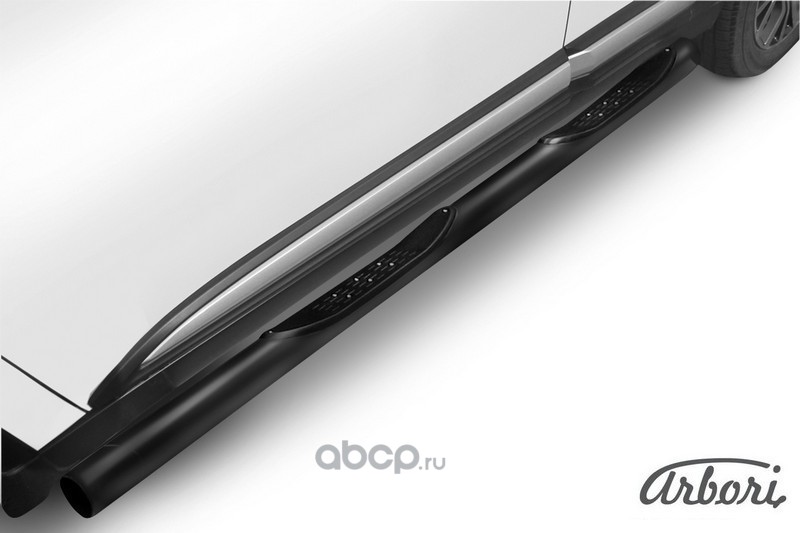 Защита порогов d76 с проступями Arbori черн. для Mitsubishi OUTLANDER 3-го поколения 2-й и 3-й рестайлинг 2015-н.в.