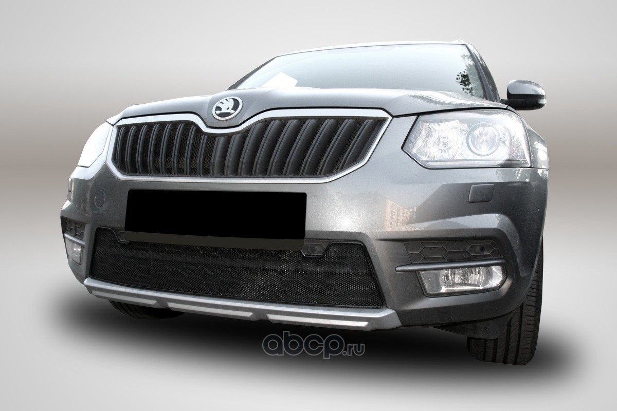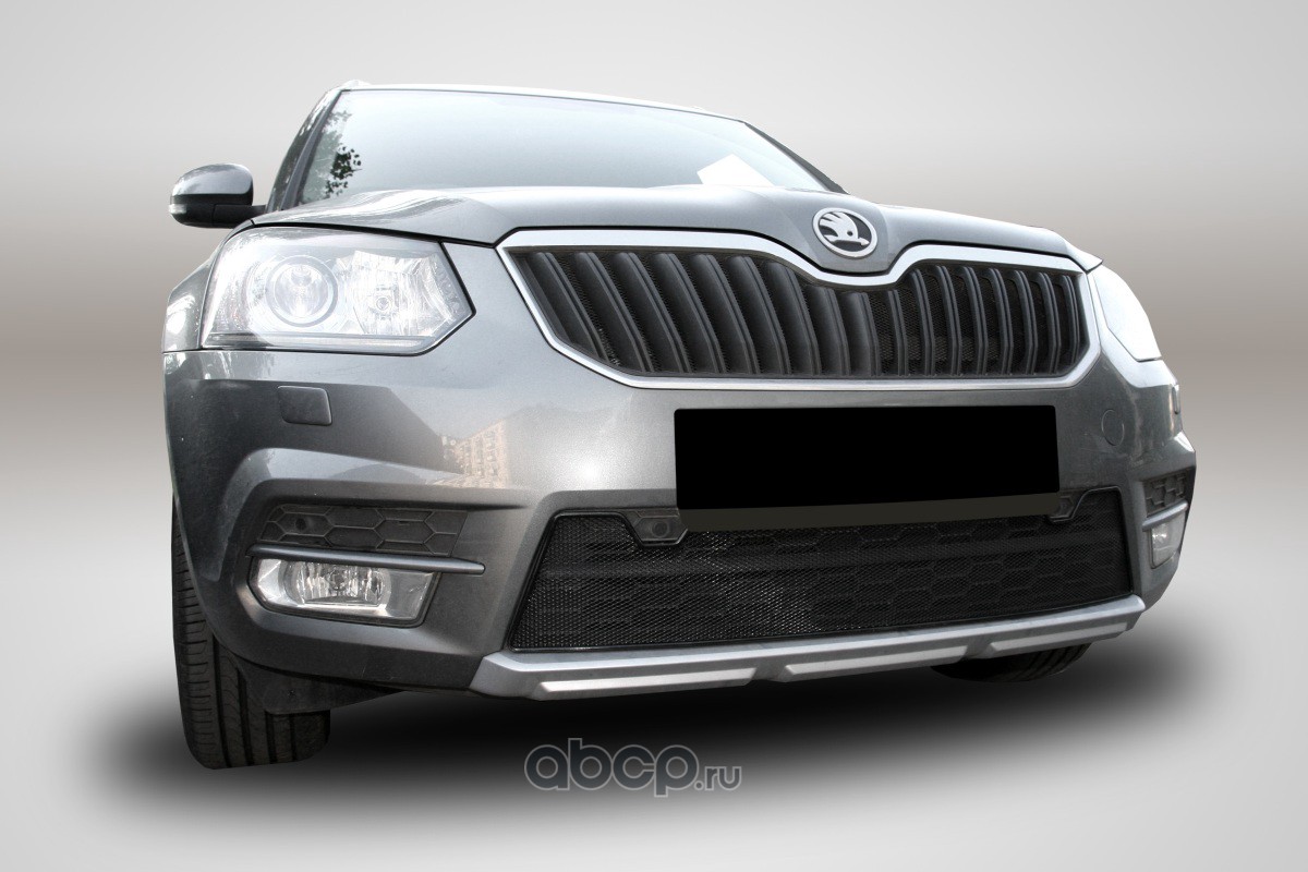 Сетка на бампер внешняя для SKODA Yeti Monte Carlo 2014-2018, черн., 15 мм, с парковочными датчиками