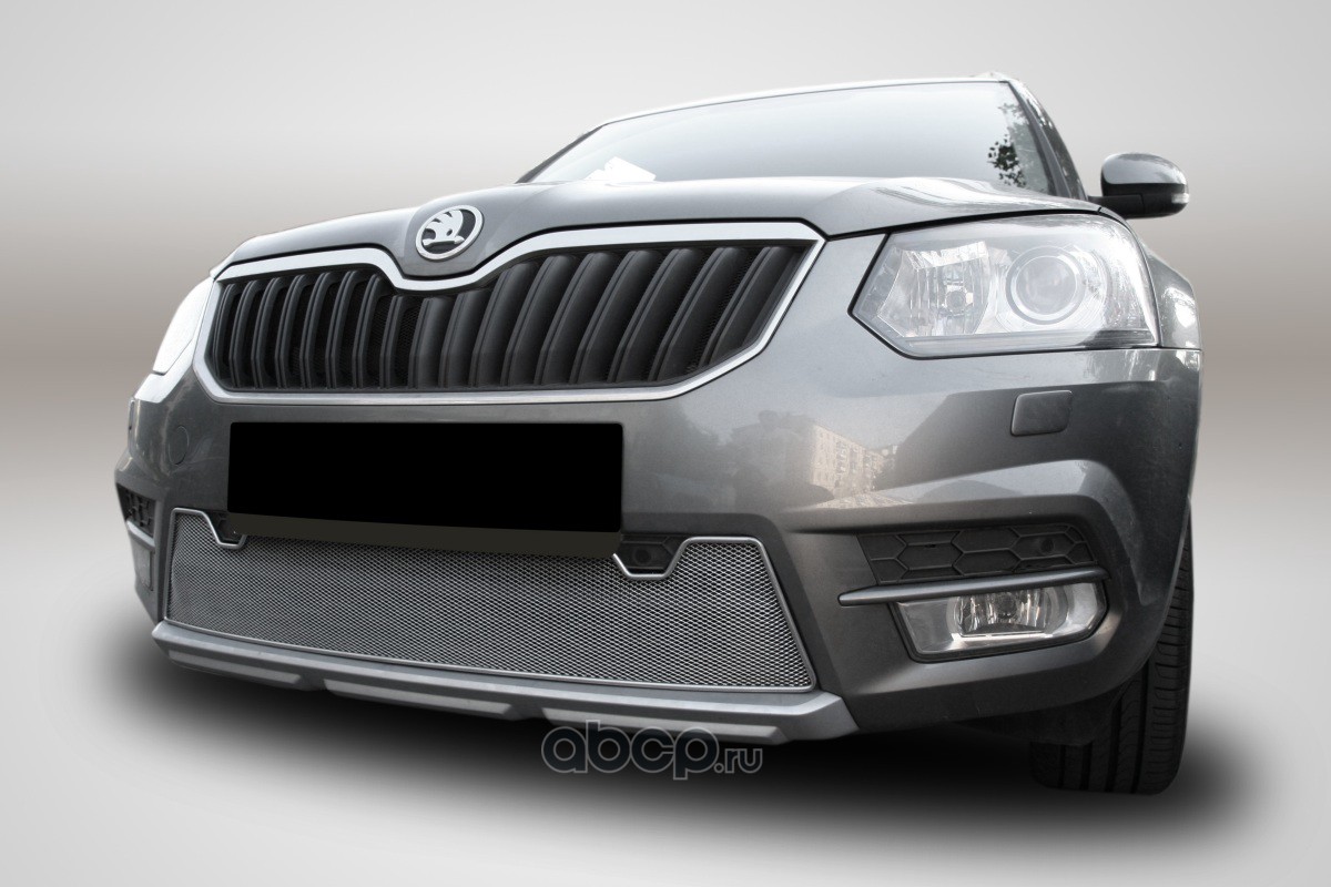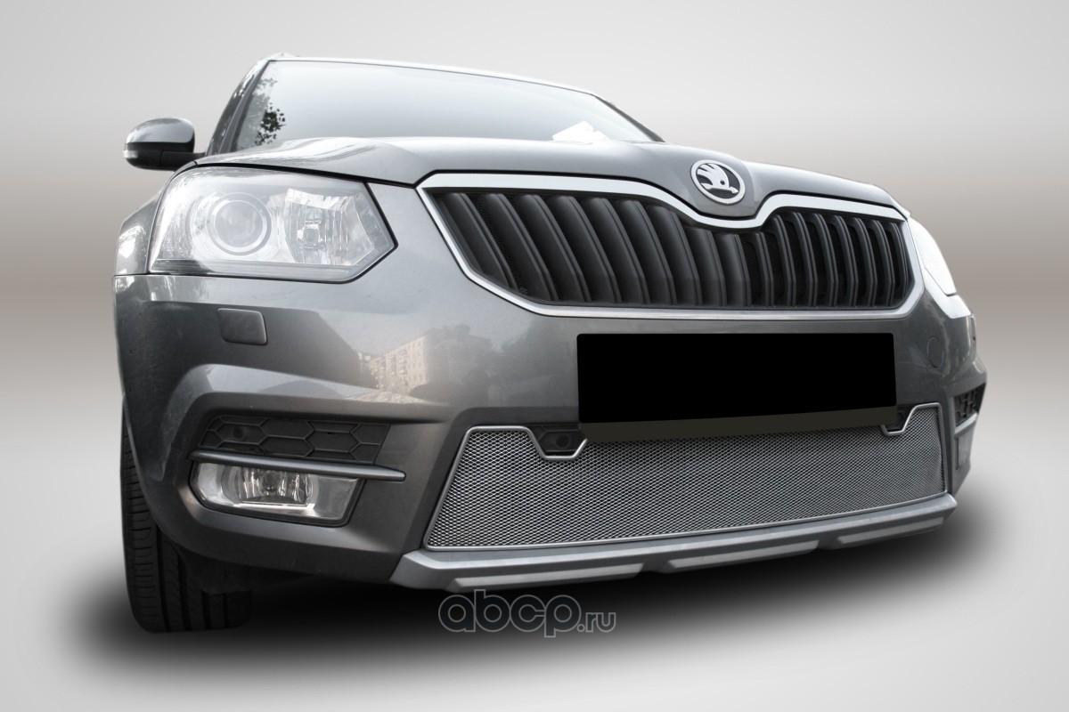 Сетка на бампер внешняя для SKODA Yeti Monte Carlo 2014-2018, хром, 15 мм, с парковочными датчиками