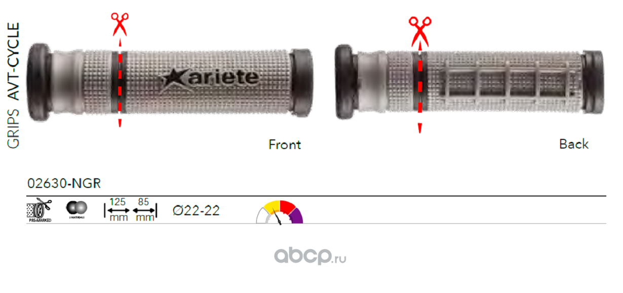 Грипсы 2шт AVT GRIPS BLACK-GREY MEDIUM TWO MATERIALS L.125mm/85mm