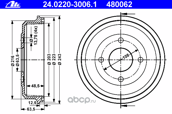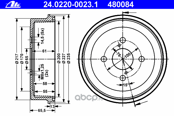 | Ate | 24022520022 | Тормозной барабан | ||