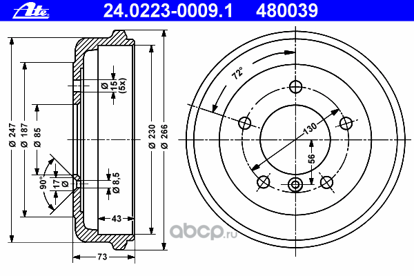 | Ate | 24022300041 | Тормозной барабан | ||