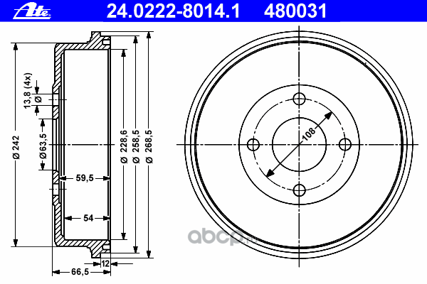 | Ate | 24022540031 | Тормозной барабан | ||